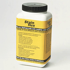 Stain Flux наносится на обратную сторону заготовки перед свариванием и защищает свариваемый металл от окисления в ходе сварки. Stain Flux разработан специально для TIG сварки низколегированных и высоколегированных сталей с содержанием никеля до 25%, но также может быть применен и при сварке другими методами. Stain Flux не может полностью заменить защитный газ. Stain Flux предпочтительнее применять там, где не может быть обеспечен поддув защитного газа. С помощью Stain Flux достигается гораздо более качественный результат, чем без защиты обратного валика, но не такой высокий как при использовании аргона, в качестве защитного газа, подаваемого с обратной стороны.
