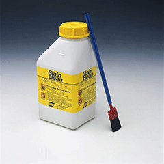 StainClean состоит из азотной (макс. 20%), серной (макс. 10%) и плавиковой (макс. 5%) кислот, нерастворимых в воде сложных фторидных структур, разбавленных водой до 100%. В процессе производства обеспечивается желеобразная консистенция.